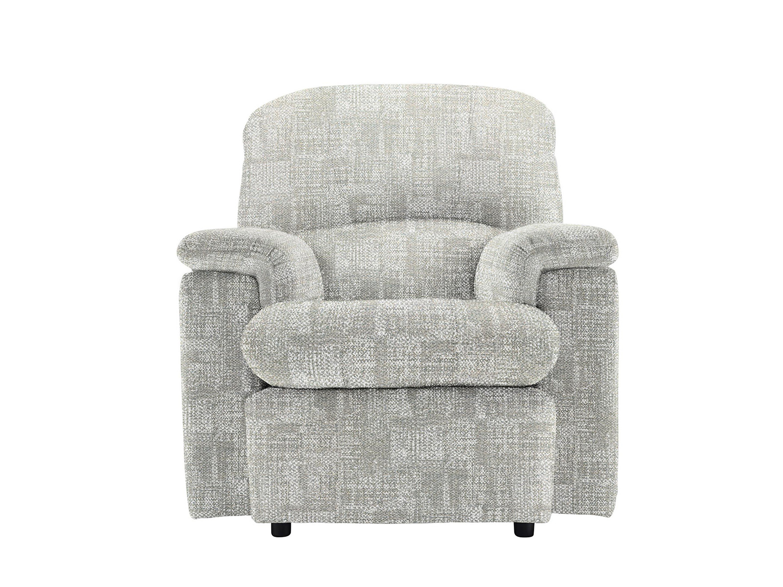 The G Plan Upholstery Chloe Arm Chair brings together Chloeâs distinctive high back and bull-nose seat cushions for a perfect balance of style and exceptional comfort. High-quality tailoring and generously padded arms create a feeling of wellbeing and relaxation, while the shorter seat delivers a supportive upright sit. Metal castors are available as a free option on static furniture. Handcrafted in the UK with a 25-year timber frame and frame construction guarantee. Choose from a range of beautiful fabrics and leathers to suit your style. Photos shown in: Capri Mushroom.