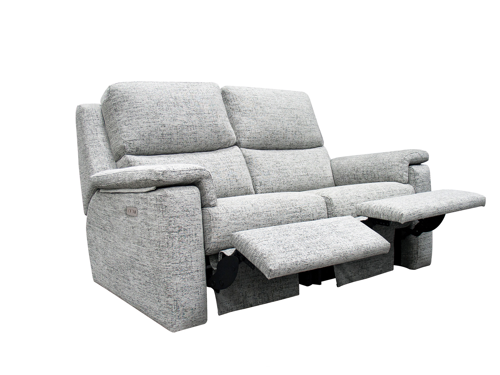 The G Plan Upholstery Harper Small Sofa Electric Recliner DBL With USB provides double power reclining with touch buttons and USB charging. Handcrafted in the UK with a 25-year timber frame and frame construction guarantee.