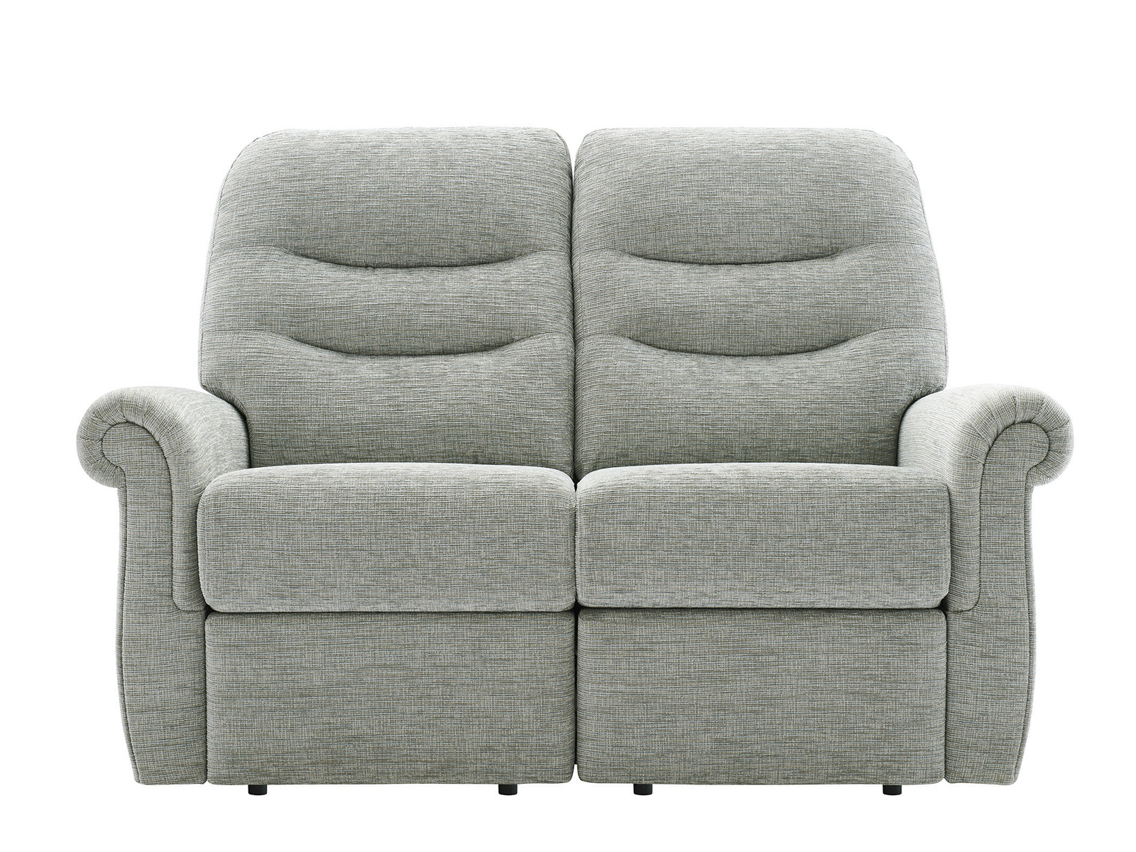 The G Plan Upholstery Holmes 2 Seater Electric Recliner DBL provides double power reclining with the rangeâs soft scroll arms. Dimensions: H 1054 mm / 41.5 in, D 1054 mm / 41.5 in, W 914 mm / 36.0 in, Seat Height 914 mm / 36.0 in, Seat Depth 514 mm / 20.3 in, Seat Width 508 mm / 20.0 in, Clearance 1143 mm / 45.0 in. Handcrafted in the UK with a 25-year timber frame and frame construction guarantee.