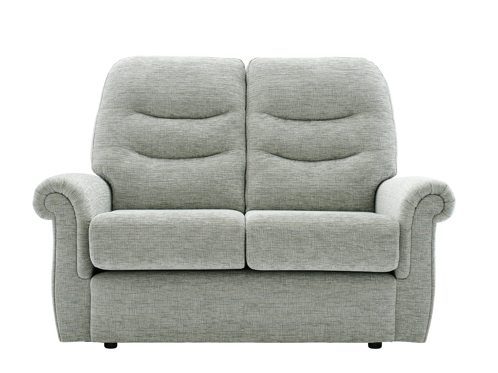 The G Plan Upholstery Holmes 2 Seater Sofa (Small) is the compact version with the same classic high back and stylish curves. Dimensions: H 1003 mm / 39.5 in, D 1054 mm / 41.5 in, W 914 mm / 36.0 in, Seat Height 914 mm / 36.0 in, Seat Depth 463 mm / 18.3 in, Seat Width 508 mm / 20.0 in. Handcrafted in the UK with a 25-year timber frame and frame construction guarantee.