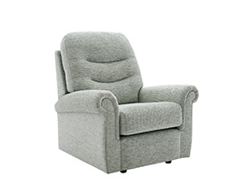 The G Plan Upholstery Holmes Chair (Small) is the compact classic armchair with supportive upright sit. Dimensions: H 1003 mm / 39.5 in, D 1054 mm / 41.5 in, W 914 mm / 36.0 in, Seat Height 914 mm / 36.0 in, Seat Depth 463 mm / 18.3 in, Seat Width 508 mm / 20.0 in. Handcrafted in the UK with a 25-year timber frame and frame construction guarantee.