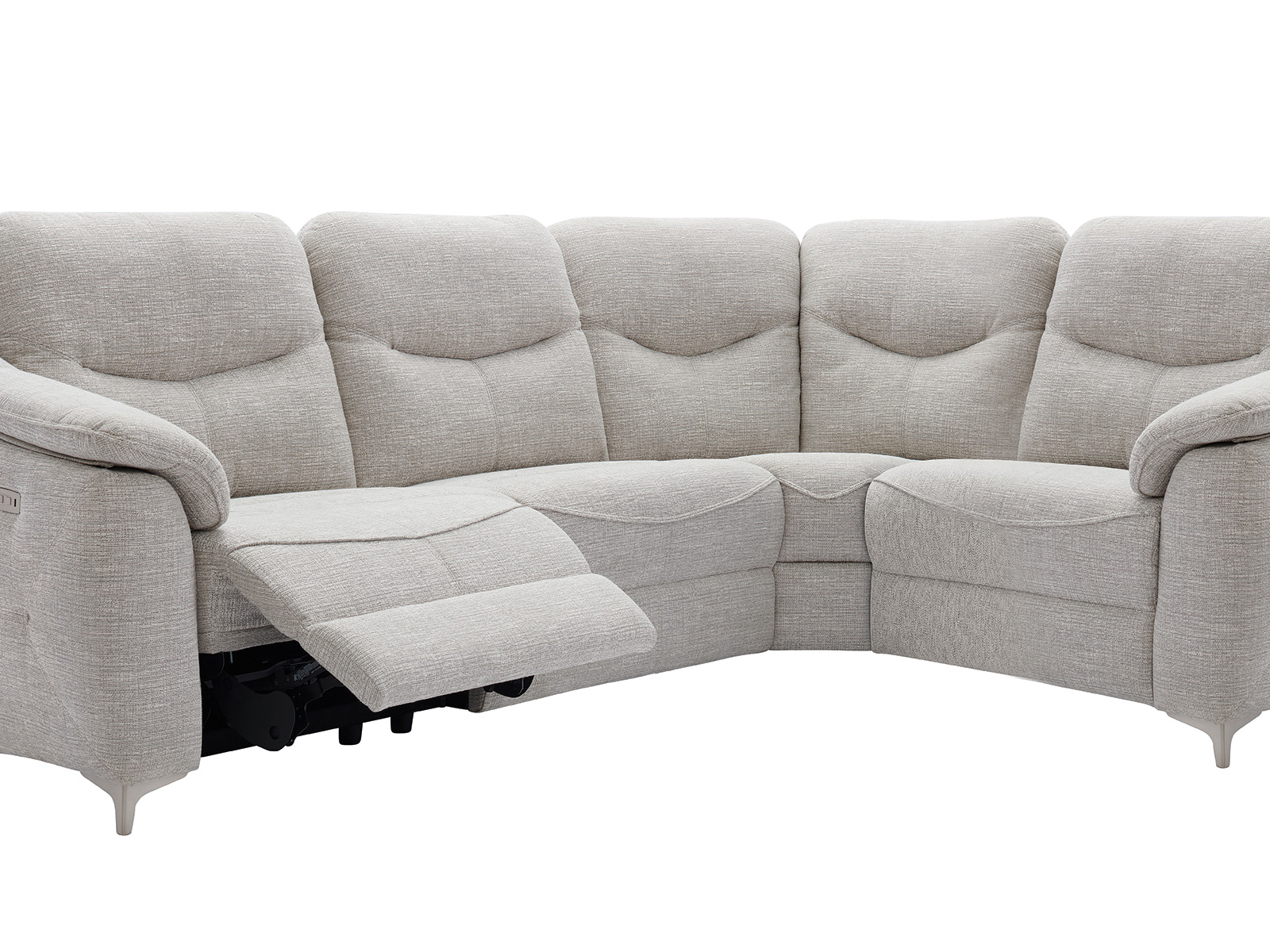 The G Plan Upholstery Jackson 3 Seater Corner 1Single Power Rec LHF with USB provides left-hand-facing power reclining with USB charging. Handcrafted in the UK with a 25-year timber frame and frame construction guarantee.