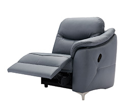 The G Plan Upholstery Jackson 3 Seater Corner with Chaise Single Man Rec RHF provides chaise with right-hand-facing manual reclining. Handcrafted in the UK with a 25-year timber frame and frame construction guarantee.
