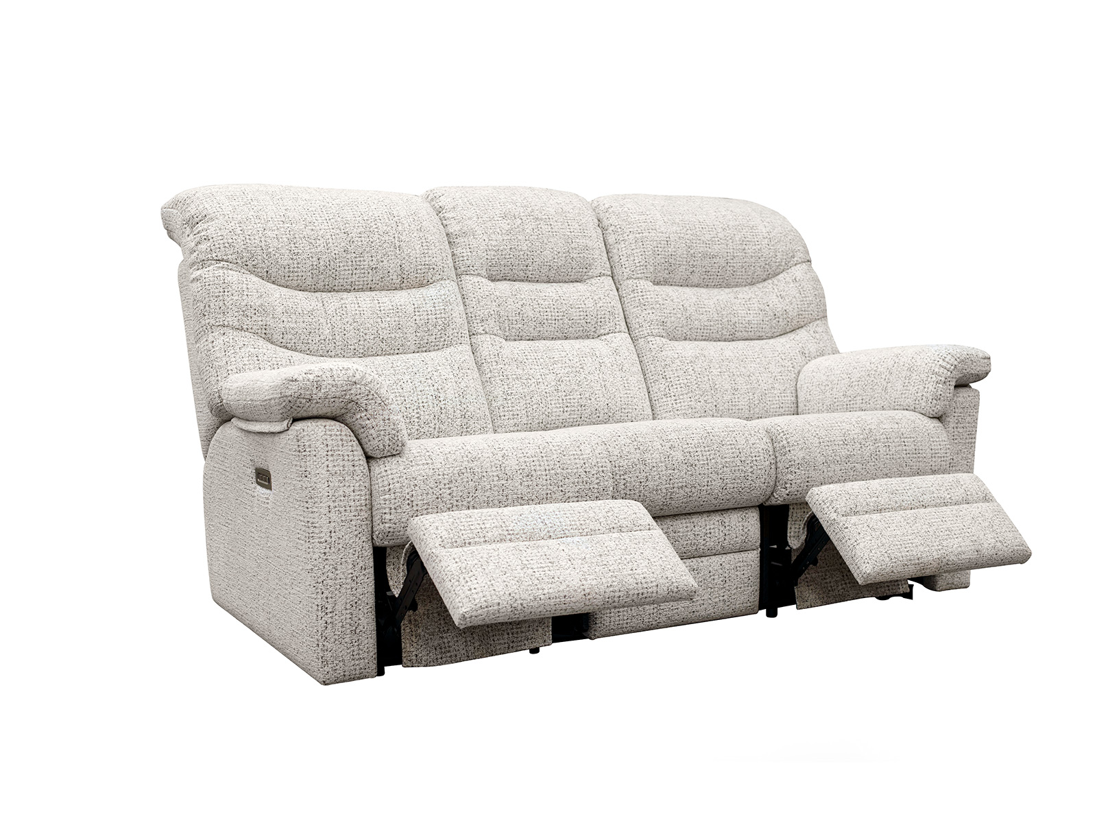 The G Plan Upholstery Ledbury 3 Seater Electric DBL With Headrest & Lumber With USB provides double power reclining with headrest and lumbar support plus USB charging. Handcrafted in the UK with a 25-year timber frame and frame construction guarantee.