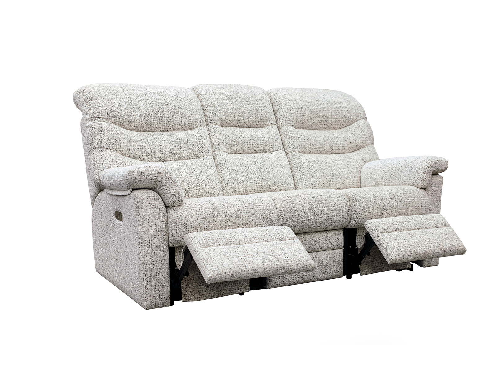The G Plan Upholstery Ledbury 3 Seater Electric Recliner DBL With USB delivers double power reclining with USB charging. Handcrafted in the UK with a 25-year timber frame and frame construction guarantee.