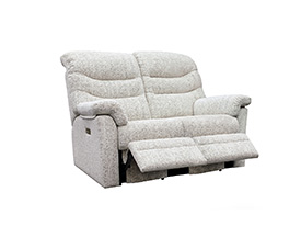 The G Plan Upholstery Mistral Two Seat Double Power Recliner provides double power reclining for effortless relaxation. Handcrafted in the UK with a 25-year timber frame and frame construction guarantee. Dimensions: H 1041 mm / 41.0 in, D 1016 mm / 40.0 in, W 1651 mm / 65.0 in, Seat Height 533 mm / 21.0 in, Seat Depth 495 mm / 19.5 in, Seat Width 1016 mm / 40.0 in, Clearance 102 mm / 4.0 in.