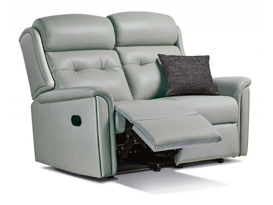 Shown with matching Recliner in Louisiana Blue and Queensbury Fossil, including optional Head Adjust feature on both pieces. Also available in larger, Lounger 2-Seater size. This range offers subtle, stylish looks which go hand-in-hand with the exceptional comfort given by the soft pillow arms and supportive seating. Using the same super-smooth actions as the Recliner Chair, this Reclining Settee is supplied in two easy bolt-together sections with removable backs. Customise this range Use this exciting new feature to visualise the Leyburn range in any of the leathers in the extensive Sherborne collection. View full Leyburn Range >