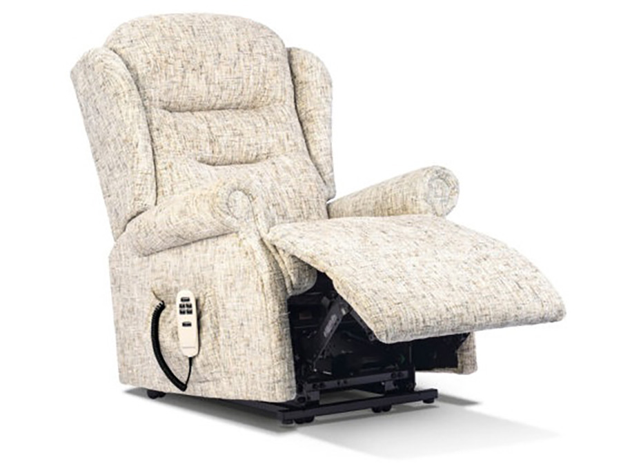 Illustrated is Standard size in Louisiana Cognac. This stylish Electric Riser Recliner is available in four sizes, Petite, Small, Standard and Royale. The Newbury design features attractive scroll arms and 'chaise' seating, with a contoured, fibre-filled back for exceptional support and comfort. Choose the HEAD TILT and/or LUMBAR ADJUSTMENT options for even more comfort and support. Customise this range Use this exciting new feature to visualise the Newbury range in any of the leathers in the extensive Sherborne collection. SINGLE, DUAL AND TRI (Cloud Comfort) motor options available The Single Motor and Dual Motor actions both lift and tilt the Recliner forwards so that getting in and out is the easiest thing imaginable. This full powerlift facility is designed to assist sufferers of arthritis, rheumatism, MS, poor circulation and many other mobility restrictions. The smooth and easy Single Motor action enables the footrest to be fully raised before the back starts reclining. It also allows the sleeping position to be reached (less reclined than on Dual Motor designs) from a starting position 20cm (8") from the wall. The sophisticated Dual Motor mechanism enables you to control the backrest and footrest independently to reach the exact position you want including a near-horizontal full sleeping position (needs a 38cm (15") gap from the wall). The versatile Tri-Motor Cloud Comfort mechanism allows independent movement of the backrest and footrest to reach your desired position, then the third motor allows you to tilt the chair when sitting or reclined to relieve the stresses on your body for that extra dimension of comfort you deserve (needs a 46cm (18") gap from the wall). View full Newbury Range >