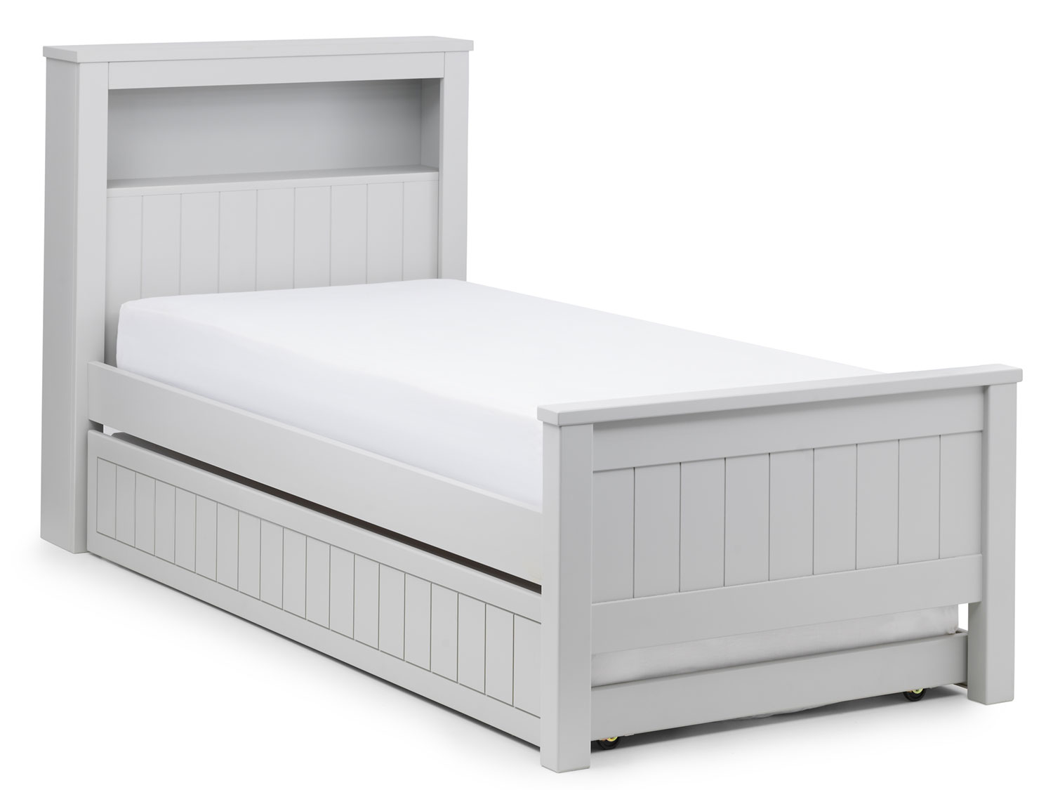 The Maine Bookcase Bed features a high headboard with a shelf, perfect for storing books at arms reach for your evening read! Crafetd from MDF with an exquisite surf white lacquer, this bed features New England style panelling on the headboard creating a timeless appeal. A solid slatted base ensures supreme comfort and prolonged mattress life. The perfect match for the Maine Underbed, creating a space saving solution perfect for sleepovers!