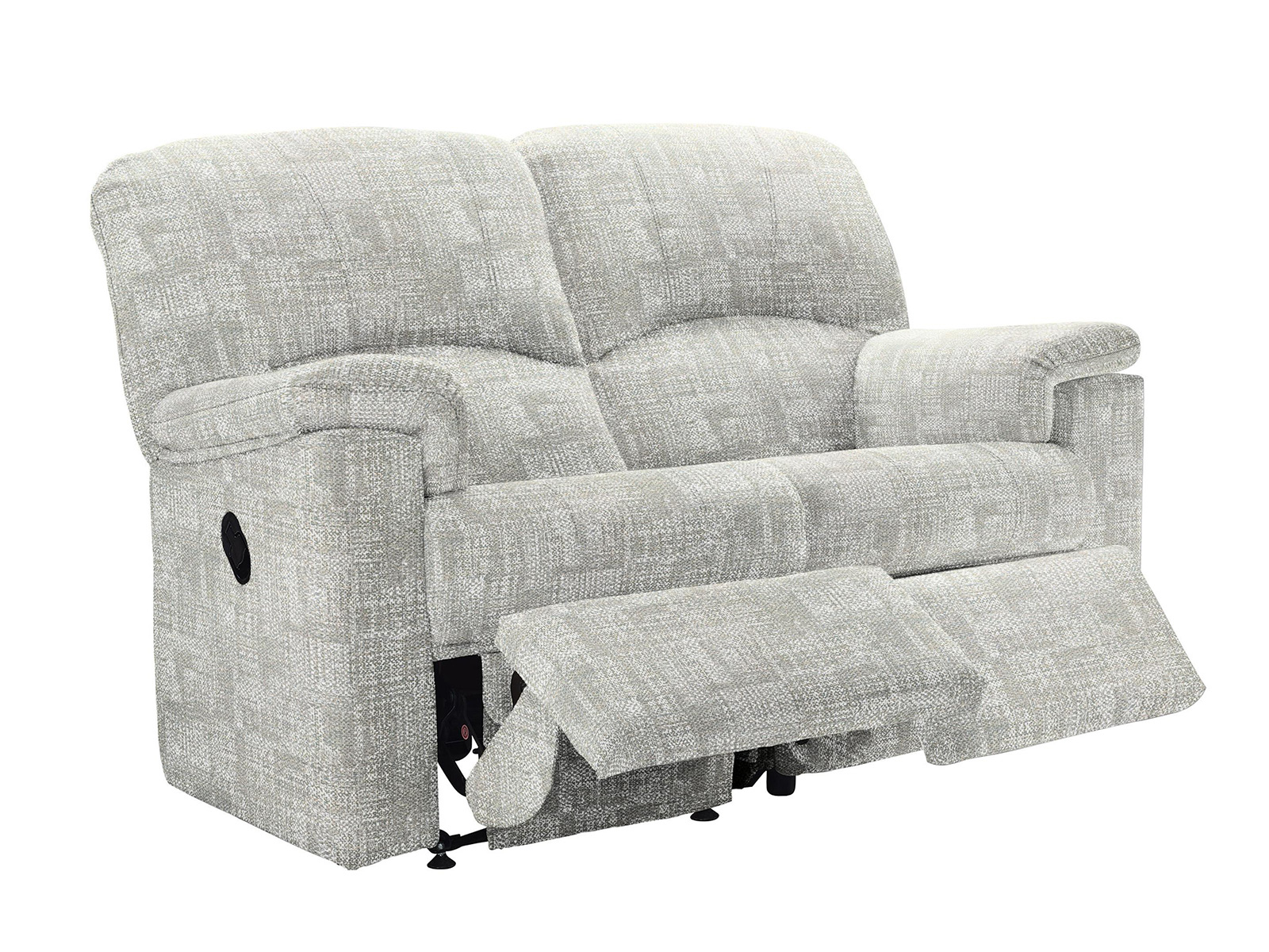 The G Plan Upholstery Chloe Two Seat Double Manual Recliner provides ultimate relaxation with double manual recliner action. Chloeâs distinctive high back and bull-nose seat cushions balance style with exceptional comfort, enhanced by generously padded arms. Recliner sofas are supplied in sections for ease of delivery and on fixed feet only. Handcrafted in the UK with a 25-year timber frame guarantee. Photos shown in: Capri Mushroom.