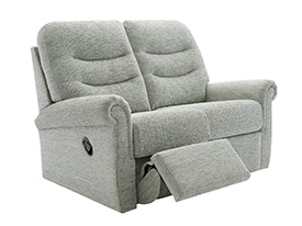 The G Plan Upholstery Holmes 2 Seater Electric Recliner DBL provides double power reclining with the rangeâs soft scroll arms. Dimensions: H 1054 mm / 41.5 in, D 1054 mm / 41.5 in, W 914 mm / 36.0 in, Seat Height 914 mm / 36.0 in, Seat Depth 514 mm / 20.3 in, Seat Width 508 mm / 20.0 in, Clearance 1143 mm / 45.0 in. Handcrafted in the UK with a 25-year timber frame and frame construction guarantee.