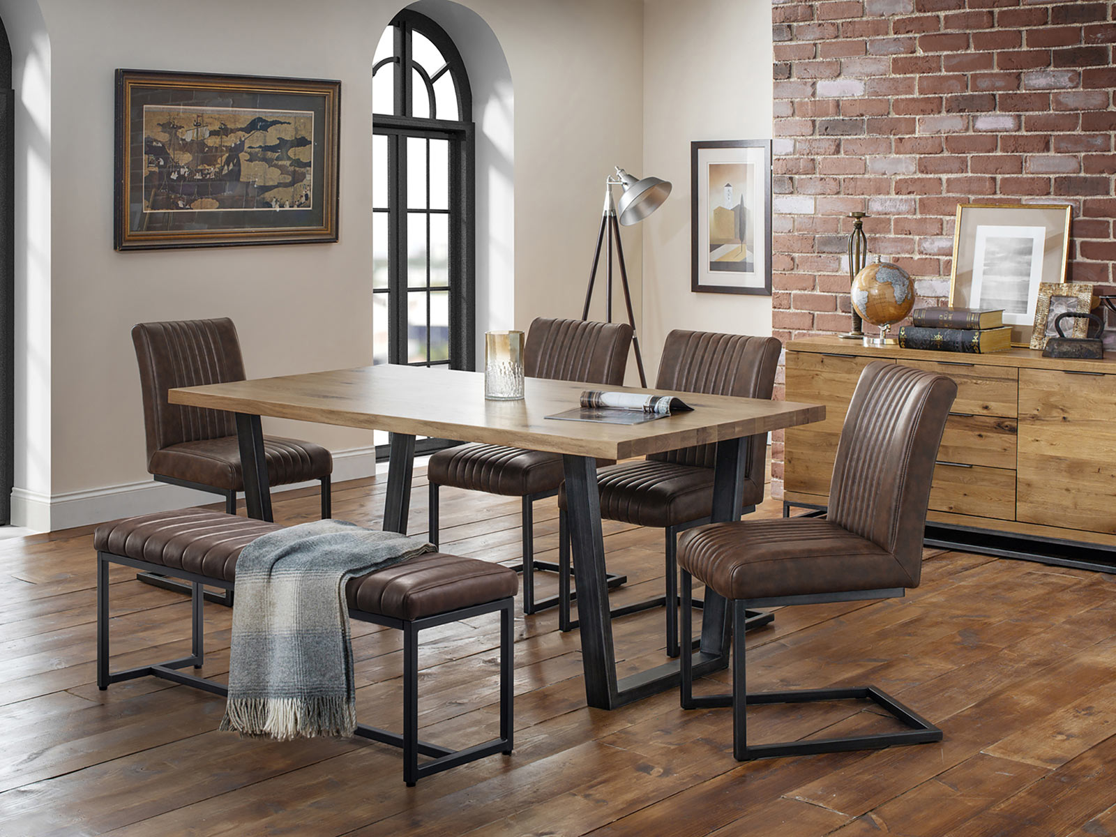 Made from solid oak, this dining table offers a rustic finish emphasising the stunning natural wood grain. The Brooklyn Dining Table offers a vintage edge featuring industrial trapeze style metal legs. This spacious table can seat up to 6 people, perfect for a wide range of modern décor. Part of the Julian Bowen Brooklyn Dining and Occasional Collection, also a great match with the Soho Dining Chairs.
