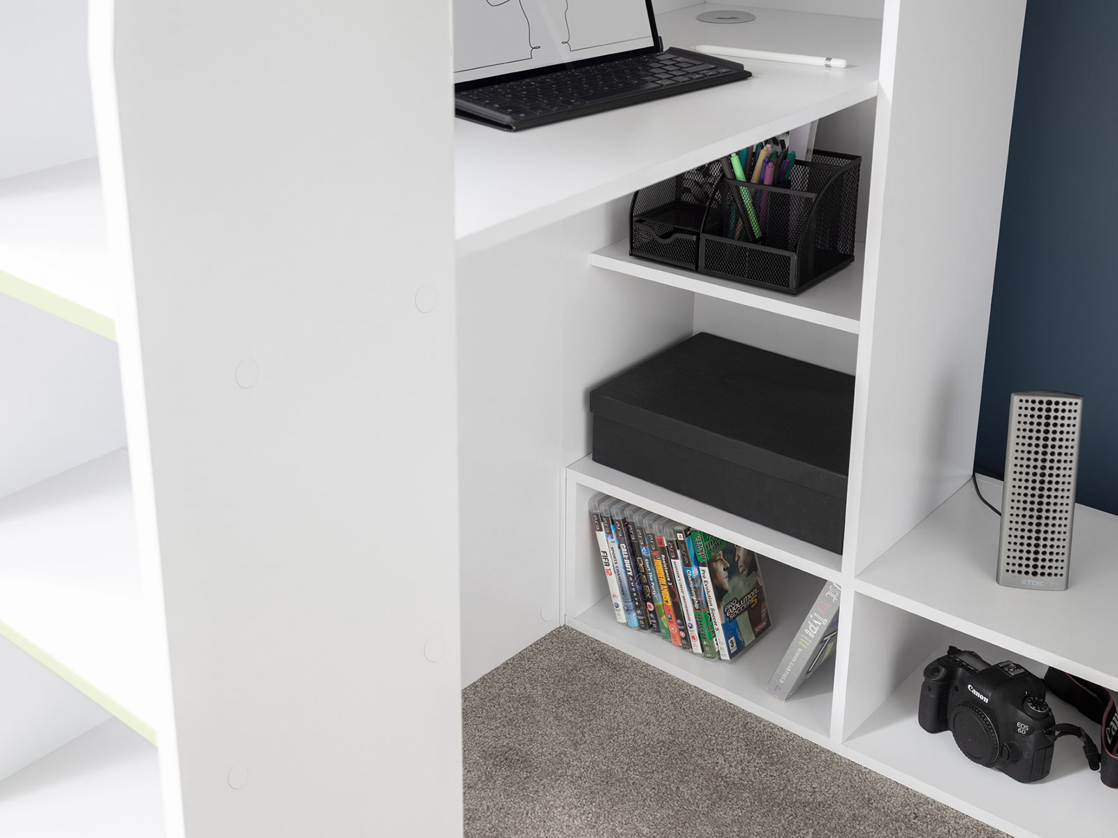 The Nebula offers the perfect set up for teenage gamers, with a large wall space for a TV, desk for a monitor and shelving for storing games, what more could you need? Finished in a choice of Anthracite, White or Grey Oak offering the perfect style for any bedroom, this modern gaming bed is sure to please. Offering somewhere to sleep, play and stream, this bed has it all.