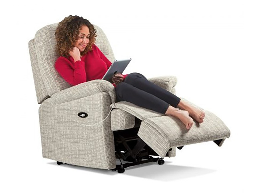 Petite size shown in Queensbury Toast. Modern, stylish Recliner available in four sizes, Petite, Small, Standard and Royale. The beautifully contoured shape is designed for exceptional comfort, with soft, stylish arms, welcoming fibre-filled back cushion and full-width 'chaise' seating. Customise this range Use this exciting new feature to visualise the Keswick range in any of the leathers in the extensive Sherborne collection. View full Keswick Range >