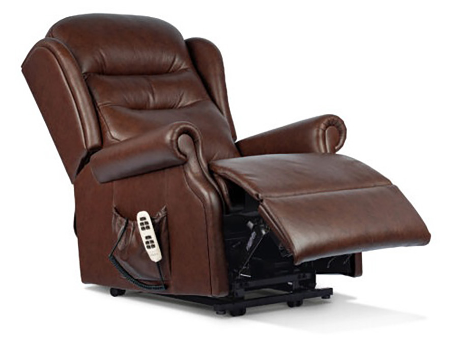 Illustrated are Standard size in Persia Mist and Royale size in Persia Pebble. This stylish Electric Riser Recliner is available in four sizes, Petite, Small, Standard and Royale. The Newbury design features attractive scroll arms and 'chaise' seating, with a contoured, fibre-filled back for exceptional support and comfort. Choose the HEAD TILT and/or LUMBAR ADJUSTMENT options for even more comfort and support. Customise this range Use this exciting new feature to visualise the Newbury range in any of the covers in the extensive Sherborne collection. SINGLE, DUAL AND TRI (Cloud Comfort) motor options available The Single Motor and Dual Motor actions both lift and tilt the Recliner forwards so that getting in and out is the easiest thing imaginable. This full powerlift facility is designed to assist sufferers of arthritis, rheumatism, MS, poor circulation and many other mobility restrictions. The smooth and easy Single Motor action enables the footrest to be fully raised before the back starts reclining. It also allows the sleeping position to be reached (less reclined than on Dual Motor designs) from a starting position 20cm (8") from the wall. The sophisticated Dual Motor mechanism enables you to control the backrest and footrest independently to reach the exact position you want including a near-horizontal full sleeping position (needs a 38cm (15") gap from the wall). The versatile Tri-Motor Cloud Comfort mechanism allows independent movement of the backrest and footrest to reach your desired position, then the third motor allows you to tilt the chair when sitting or reclined to relieve the stresses on your body for that extra dimension of comfort you deserve (needs a 46cm (18") gap from the wall). View full Newbury Range >
