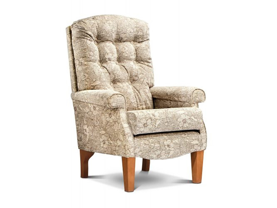 Shown in Lyon Silver with Light Classic Legs. Special Low Seat height for the smaller user. Also available in Standard and High Seat versions. Traditional Fireside Chair with attractive scroll arms and a sprung back with distinctive headroll for excellent support. Built on the sturdiest of frames, it will provide years of lasting comfort and support, with reversible seat cushion for maximum wear and the highest standards in upholstery detail. Customise this range Use this exciting new feature to visualise the Salisbury range in any of the covers in the extensive Sherborne collection. View full Salisbury Range >