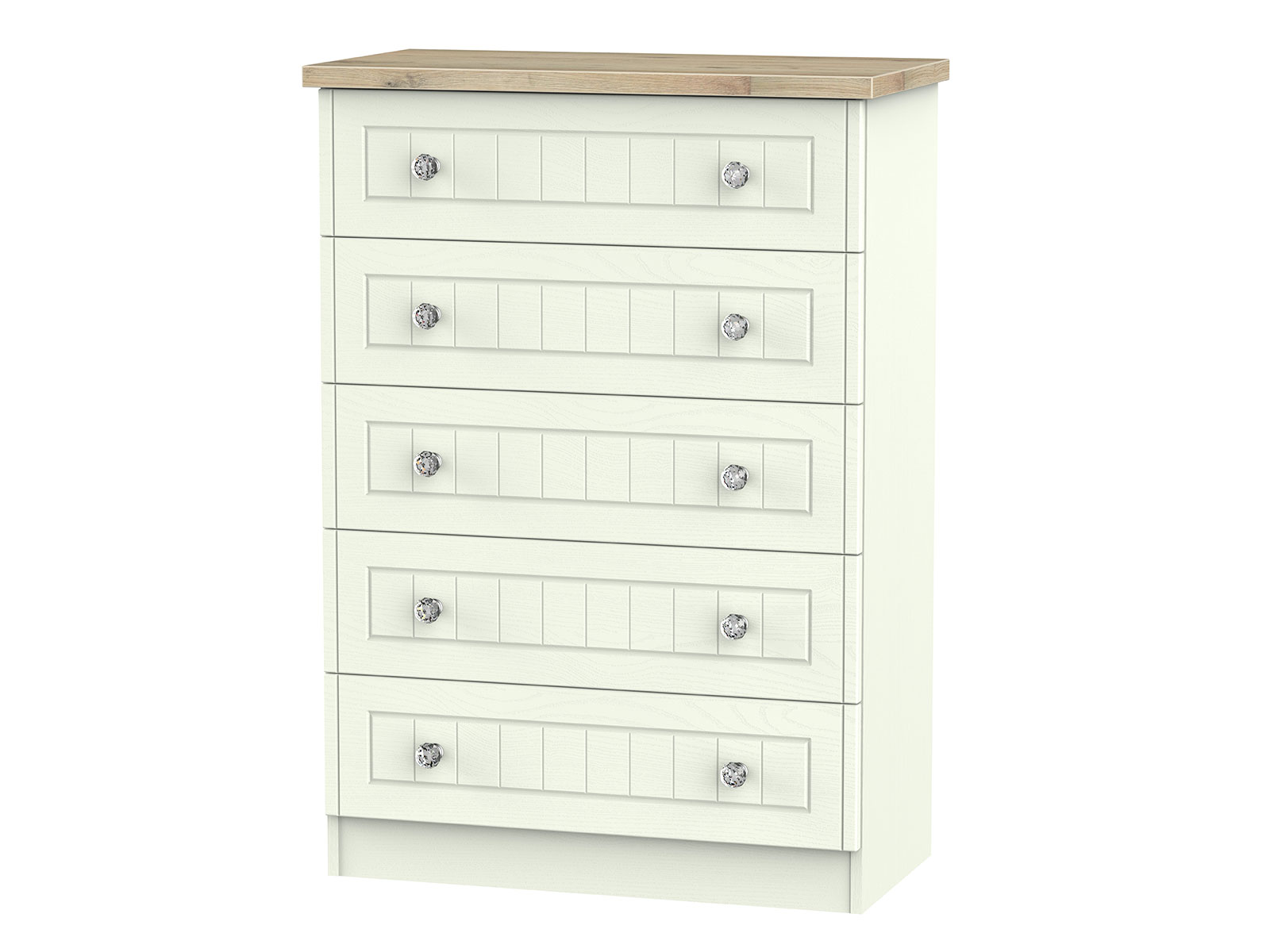 This wide 5 drawer chest of drawers is practical and stylish. Perfect for any home as a free standing storage unit.