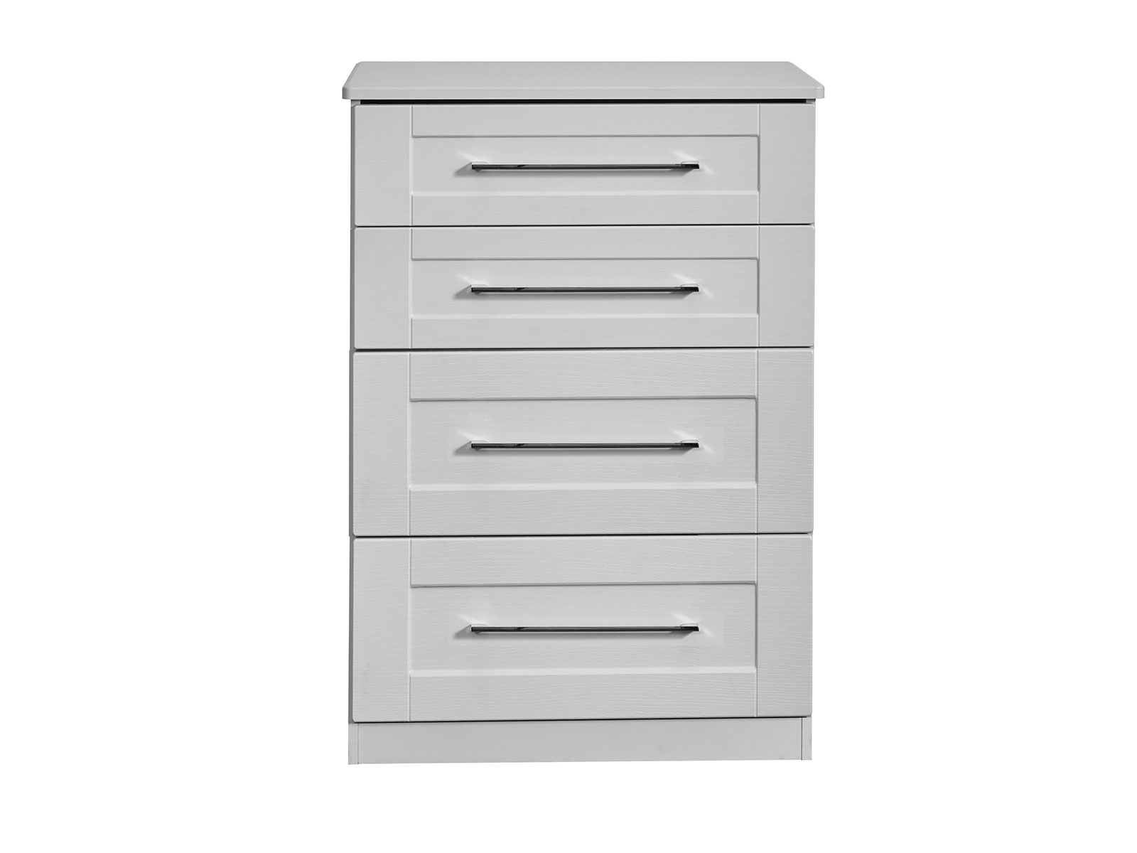 This deep 4 drawer chest of drawers is practical and stylish. Perfect for any home as a free standing storage unit.